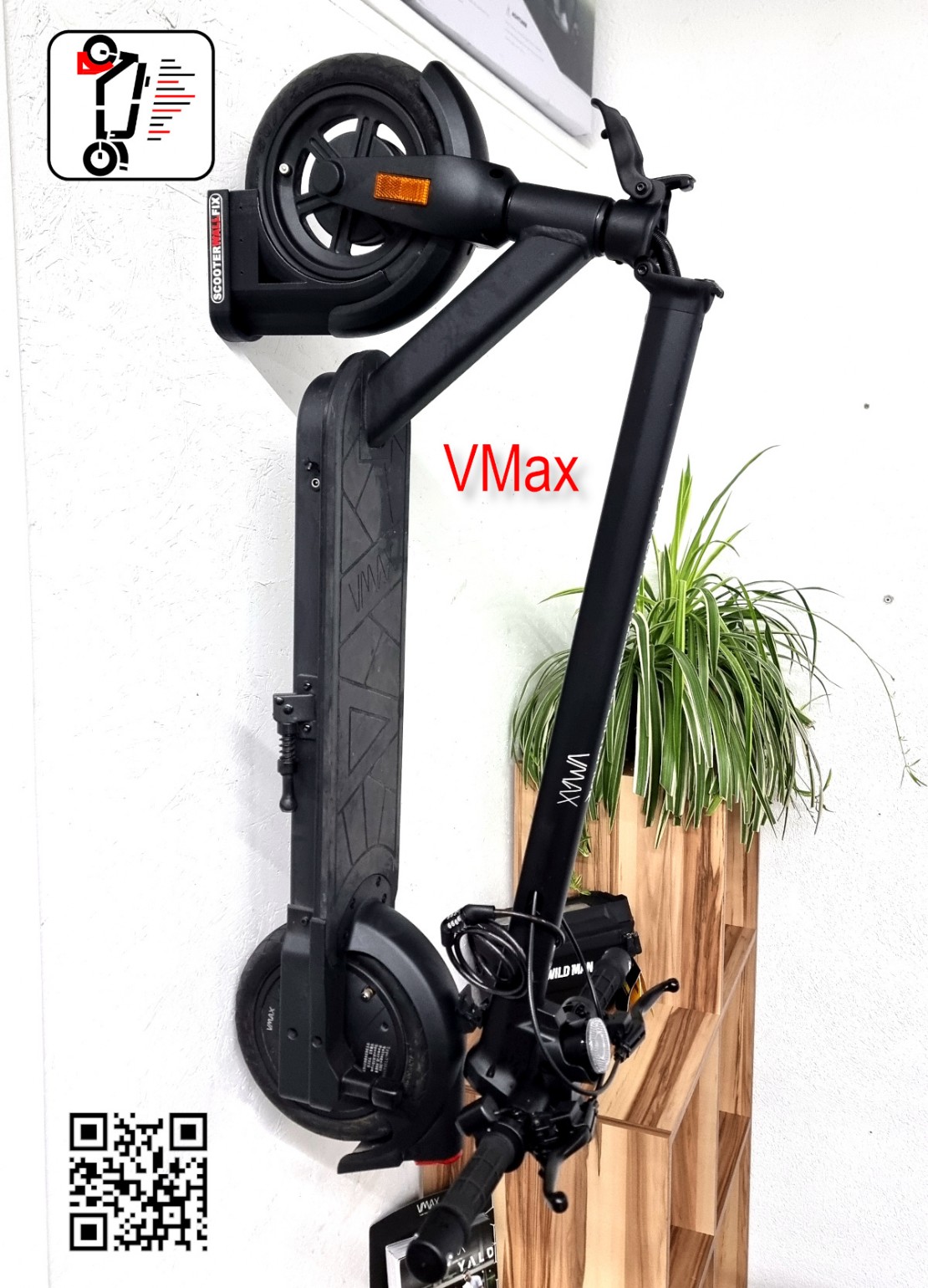 mit unserer Wandhalterung für E-Scooter kannst du deinen Scooter einfach an die Wand hängen.